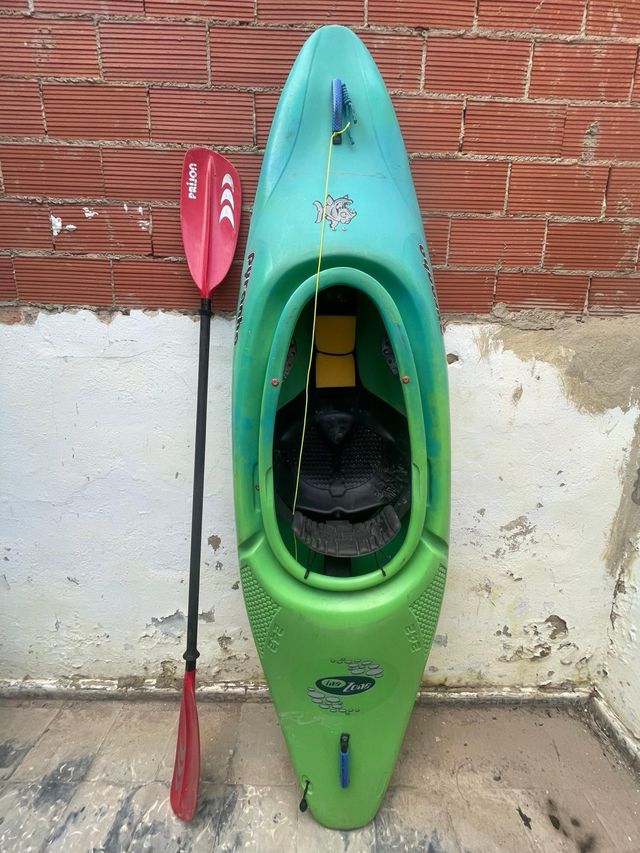 kayak para descenso de rio, mar o pantano. Muy estable y cómodo. Incluye cubre, chaleco y remo de carbono de pala doble. Entrego en Valencia o área metropolitana.