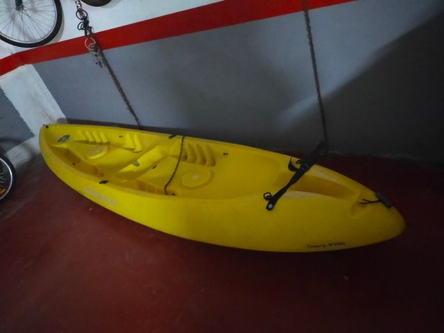 kayak rigido Amarillo para dos adultos y UN niño. Tene marcas de uso pero no hay nada roto. El Kayak esta en Estartit.
