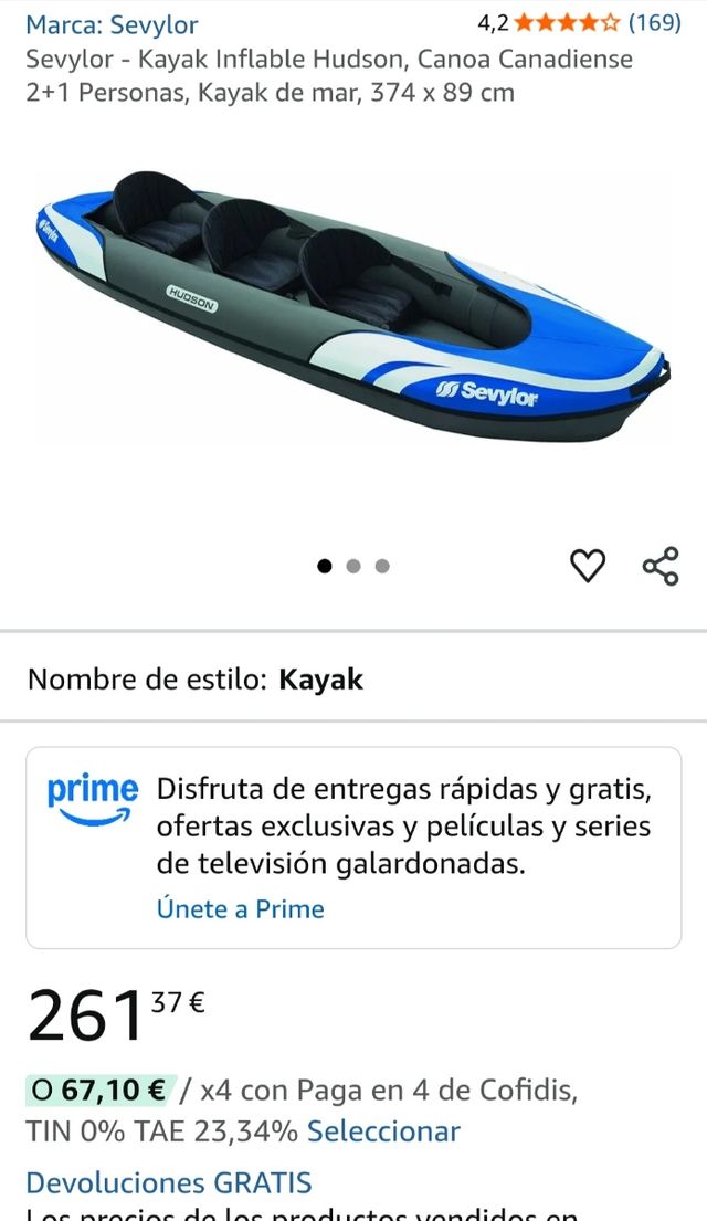 Detalles del productoKayak Sevylor Hudson hinchable en perfectas condiciones, usado 5 veces. Para recoger en zona de Cabo de Palos. Se entrega sin remos y sin inflador