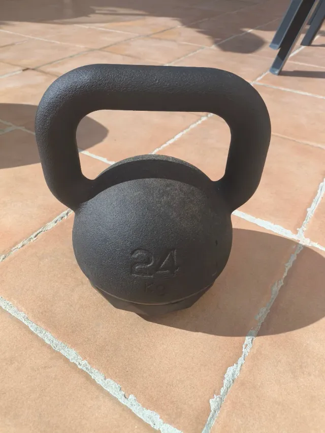 Kettlebell de 24 kg, ideal para entrenamientos de fuerza y acondicionamiento. - Material: Hierro fundido. - Peso: 24 kg. - Mango ergonómico
