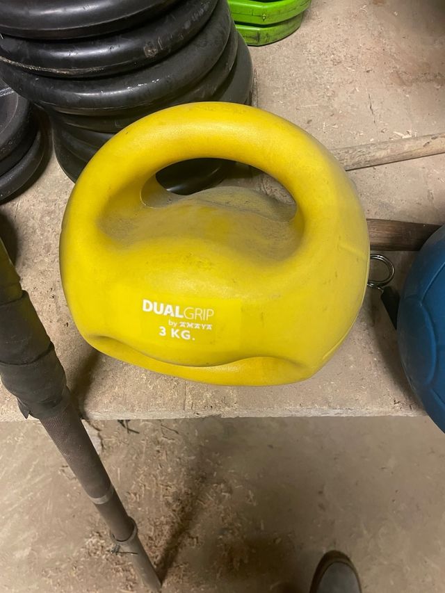 Kettlebell amarilla de 3 kg/4kg/5kg con diseño DUALGRIP.