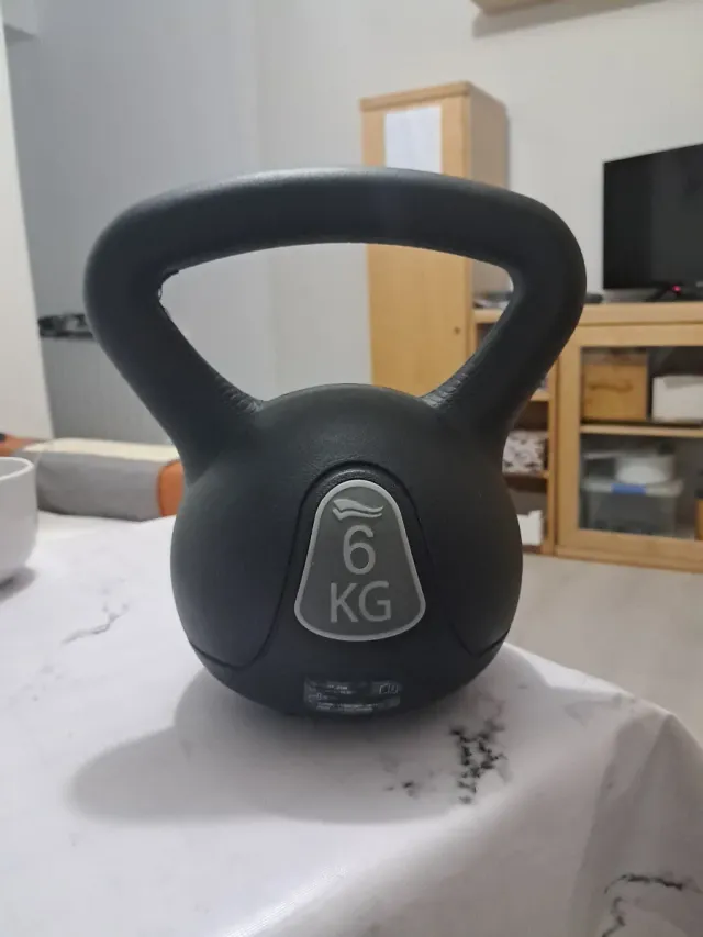 Pesa rusa de 6 kg, ideal para entrenamientos. - Color negro mate. - Asa ergonómica para un agarre cómodo. - Base estable.