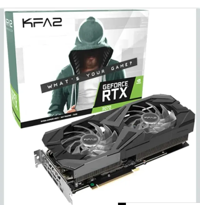 Tarjeta gráfica KFA2 GeForce RTX 3070. Diseñada para gaming y alto rendimiento. - Modelo: RTX 3070 - Arquitectura NVIDIA Ampere - Soporte para Ray Tracing y DLSS