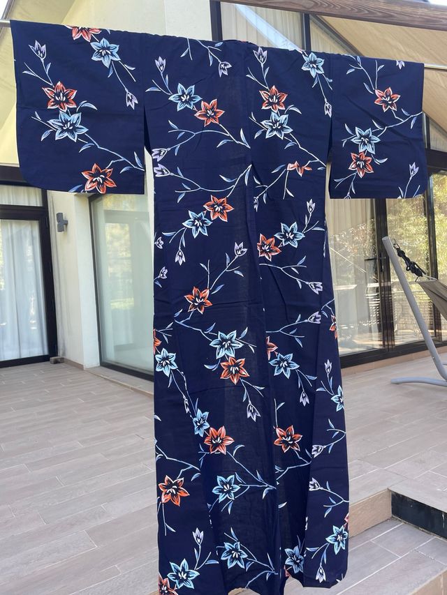 Kimono Japonés Verano Algodón Azul Yukata