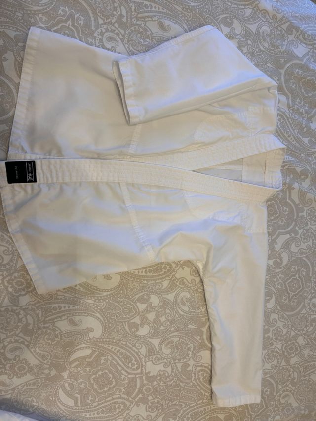 Traje de judo blanco, ideal para entrenamientos y competiciones. - Tejido resistente y cómodo. - Cierre cruzado tradicional.