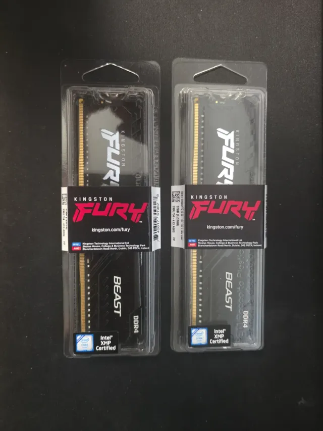 Detalles del productoDos módulos de memoria RAM Kingston Fury Beast DDR4.
