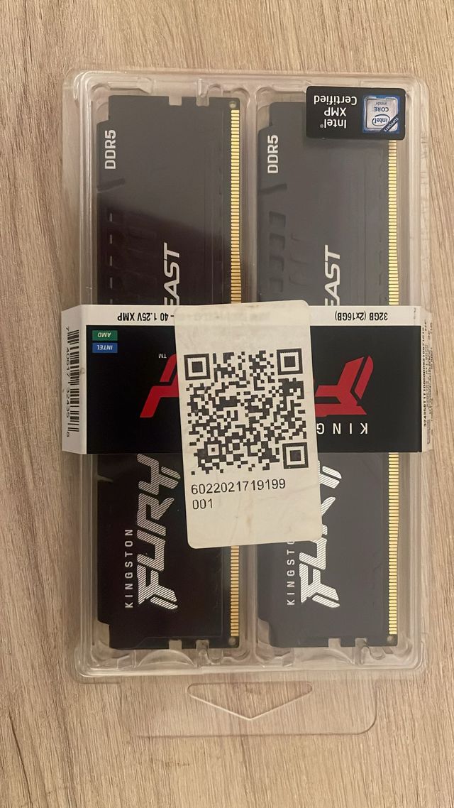 Detalles del productoKit de memoria RAM Kingston FURY Beast DDR5 5200Mhz de 32GB (2 módulos de 16GB cada uno).