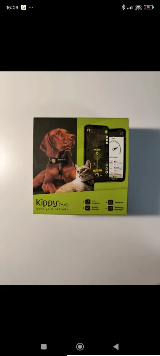Detalles del productoRastreador GPS Kippy para mascotas, con funciones de seguimiento y monitorización.