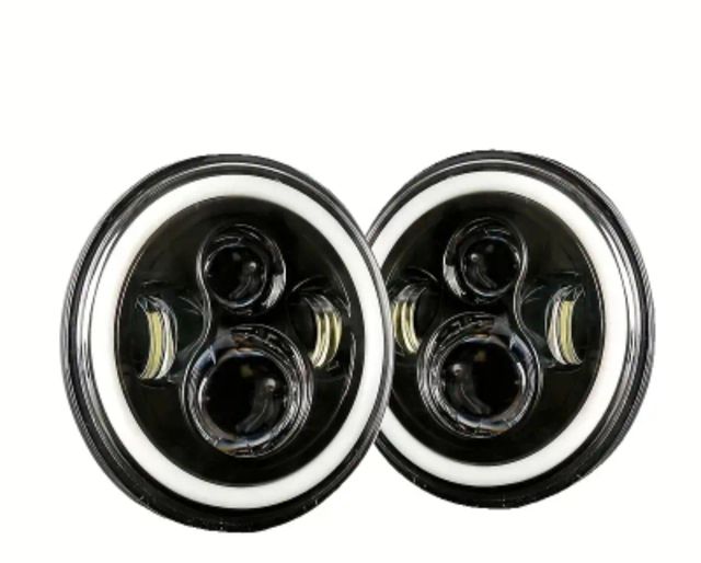 Detalles del productoKit de dos faros LED redondos de 7" pulgadas con aro de luz blanca posición-Largas e intermitentes. ( Opciones de varios colores )