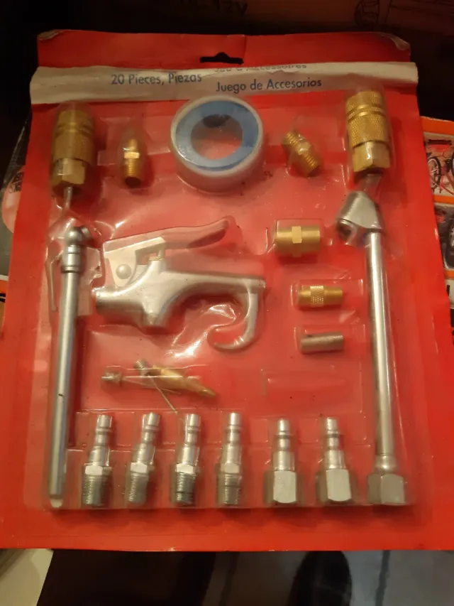 Detalles del productoKit de 20 piezas para pistola de aire comprimido.
