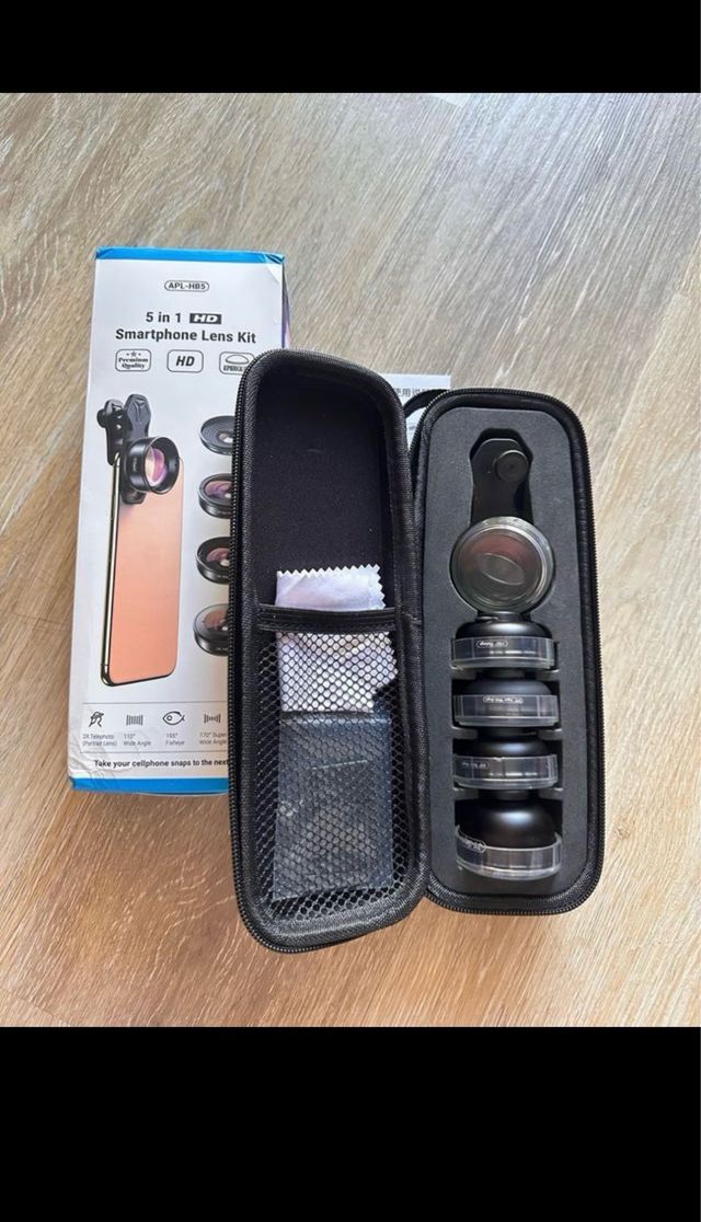 Detalles del productoVendo kit de lentes para smartphone 5 en 1 en perfecto estado. Incluye estuche protector.
