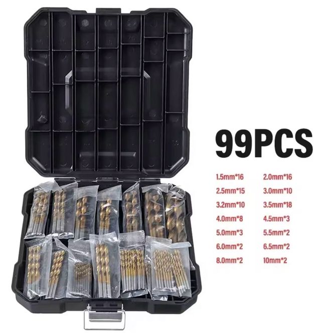 🔩 Juego completo de 99 brocas recubiertas de titanio para metal, madera y plástico.