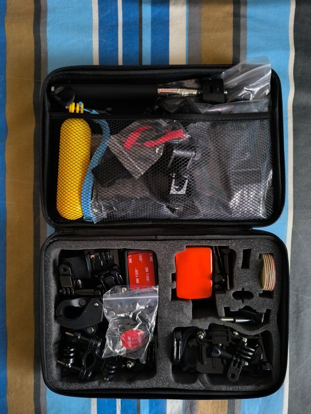 Detalles del productoEstuche con diversos accesorios para cámaras deportivas.