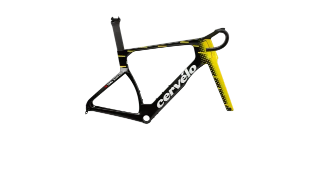 Detalles del productoKit de cuadro para bicicleta Cervelo S5. Diseño aerodinámico en color negro con detalles en amarillo.