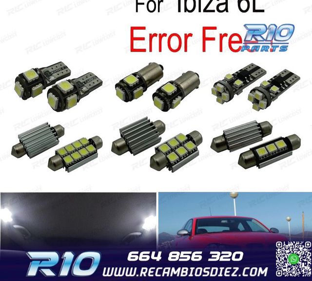 Detalles del productoMóvil: 664 856 320 - Referencia: RLC166031. KIT DE 8 BOMBILLAS LED INTERIOR LUCES DE LECTURA PARA SEAT IBIZA IV MK4 6L 02-08 Bombillas led de Alta calidad, Súper brillante. Instalación sencilla: no es necesario ningún tipo de modificación, simplemente sustituir las bombillas led por las que trae el vehículo de origen. Disponen de sistema Can bus: no se encenderá aviso de luz fundida en cuadro. Diseñadas para una perfecta resistencia al calor. Color: Luz blanca led Larga duración: hasta 50,000 horas *Si las bombillas no funcionan, por favor gire 180 grados para que funcionen, tienen po
