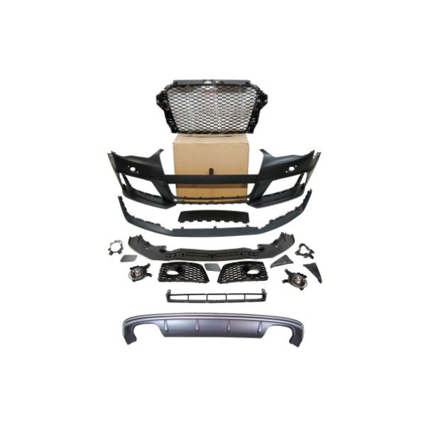 Detalles del productoParagolpes delantero y difusor trasero para Audi A3 V8 13-15 Sportback Look RS3 II Plug and play. Fabricado en plástico ABS. Gran calidad. Acople perfecto. Utiliza los anclajes originales. Estos no son productos originales de la marca Audi. El artículo ofrecido solo es adecuado para los modelos de vehículos descritos.