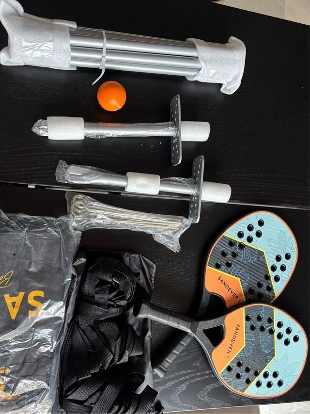 Detalles del productoKit de playa Sandever con palas, pelotas y red.