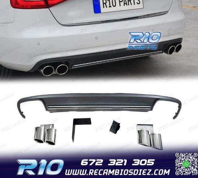 KIT DIFUSOR AUDI A4 B8 11-15 LOOK S4 + 2 COLAS DOBLES INOX