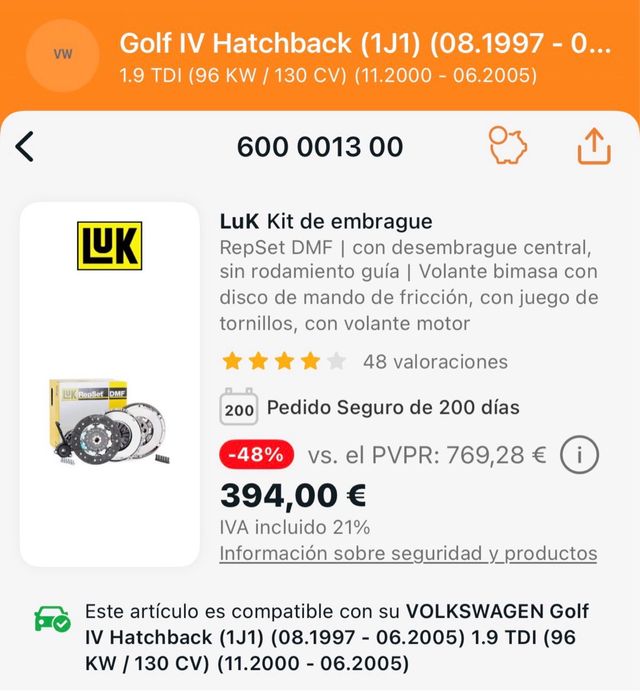 Detalles del productoKit de embrague LUK RepSet DMF con volante bimasa.