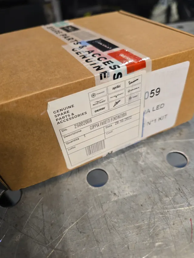 Kit de faros antiniebla LED para Moto Guzzi. Nuevo sin uso - Modelo: Coppia Faretti Fendinebbia. - Referencia: 2S002059. - Fecha de fabricación: 28.10.2022.