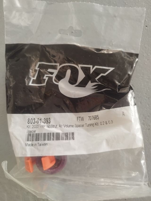 Detalles del productoKit de separadores de volumen de aire FOX para Trek IsoStrut 2020. Incluye 2 separadores, uno naranja y otro morado. Están en perfecto estado, sin usar. - Para modelos Trek IsoStrut 2020. - Kit de ajuste de volumen de aire. - Incluye 2 separadores de 0.2 y 0.3. - Fabricado en Taiwán.