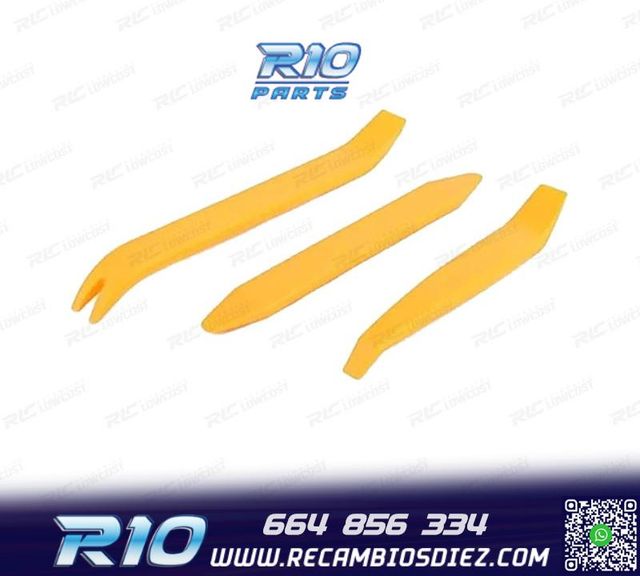 Detalles del productoMóvil: 664 856 334 - Referencia: RLC020024. KIT HERRAMIENTAS EXTRACCIÓN RADIOS PANELES Kit de 3 herramientas Fabricado en plástico para no dañar los paneles del vehículo.