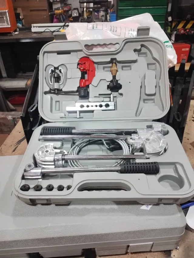 Kit de herramientas para taller, mantenimiento y bricolaje. - Cortatubos - Abocardador - Roscador - Curvador de tubos - Accesorios varios