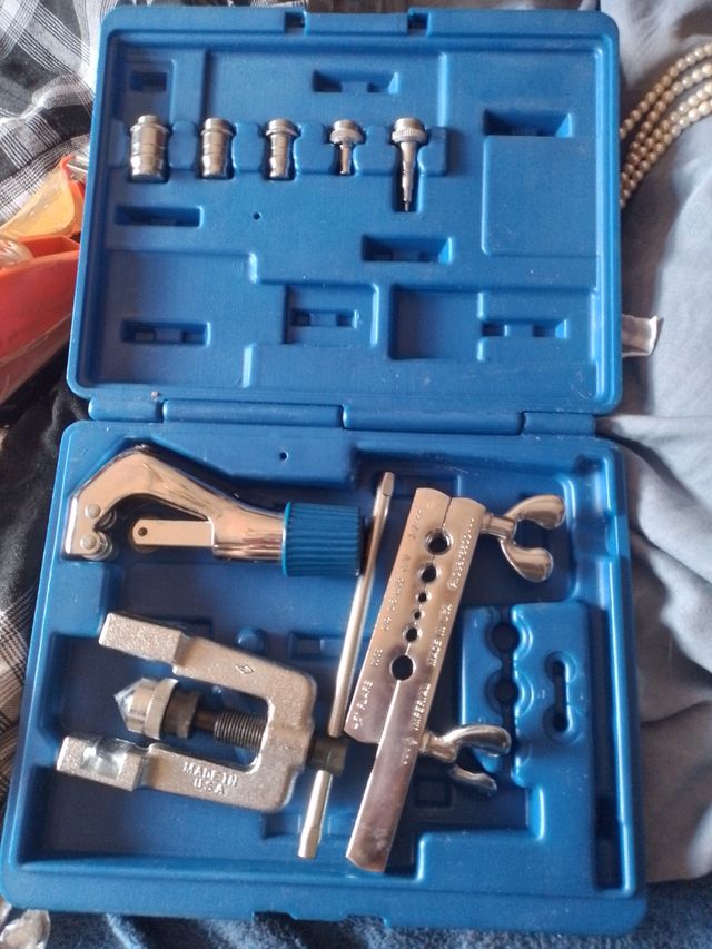 Detalles del productoKit de herramientas Imperial para tubos, en buen estado. Incluye varias piezas para cortar y doblar tubos. Ideal para trabajos de fontanería o similares.