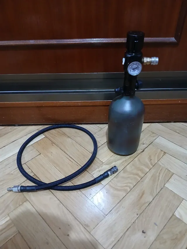 Detalles del productoKit HPA para airsoft que incluye botella 0,62 L ,línea y regulador.