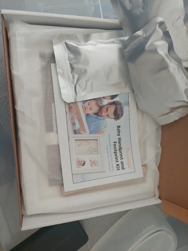 Kit para crear huellas de manos y pies de bebé de la marca PewinGo. Ideal para guardar un recuerdo especial. - Incluye materiales para crear la huella. - Marco para fotos.