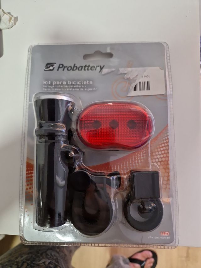 Kit de luces para bicicleta marca Probattery. - Incluye linterna delantera. - Incluye luz trasera. - Incluye sistema de sujeción. - Alta luminosidad.