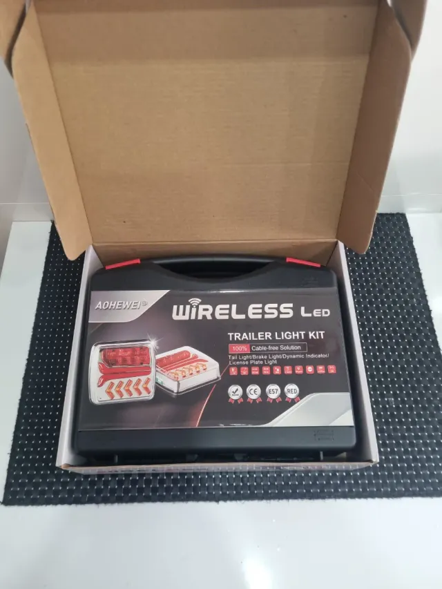 Detalles del productoKit de luces LED inalámbricas para remolque de la marca Aohewei. Solución sin cables para señalización.