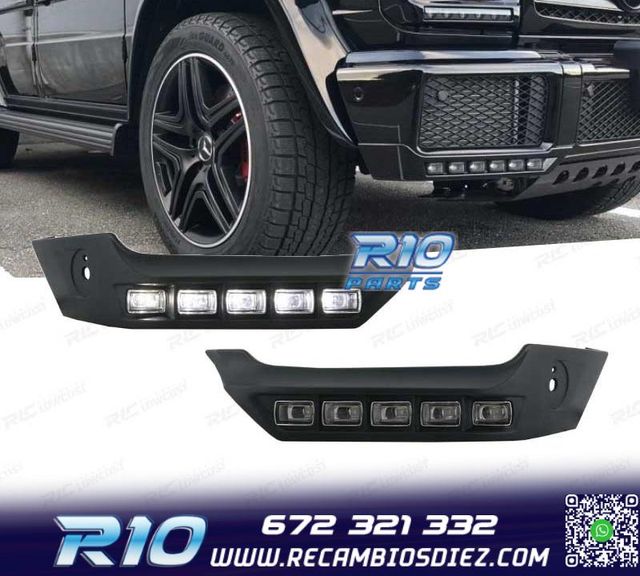 Detalles del productoMóvel: 672 321 332 - Referencia: RLC028125. KIT LUZ DIURNA PARA MERCEDES CLASE G W463 LEDS DE ALTA PONTENCIA 89- Válido para: Mercedes Clase G W463 (1989 en adelante) Equipado con parachoques delantero AMG y placas protectoras de acero inoxidable3 No válido: Mercedes G-Class W463 con paragolpes standard Mercedes G-Class W463 G63 AMG o G65 AMG (2016-) Especificaciones: Spoiler de extensión del parachoques delantero Luces de circulación diurna LED Material: Plástico ABS. Color: Ahumado Producto sin E-mark/ABE/TUV. Montaje. Instalación sencilla, directamente en los anclajes originale