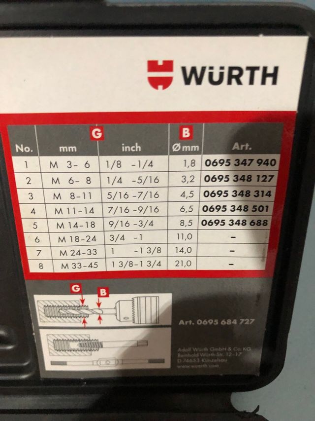 Detalles del productoKit de machos de roscar de la marca Wurth.