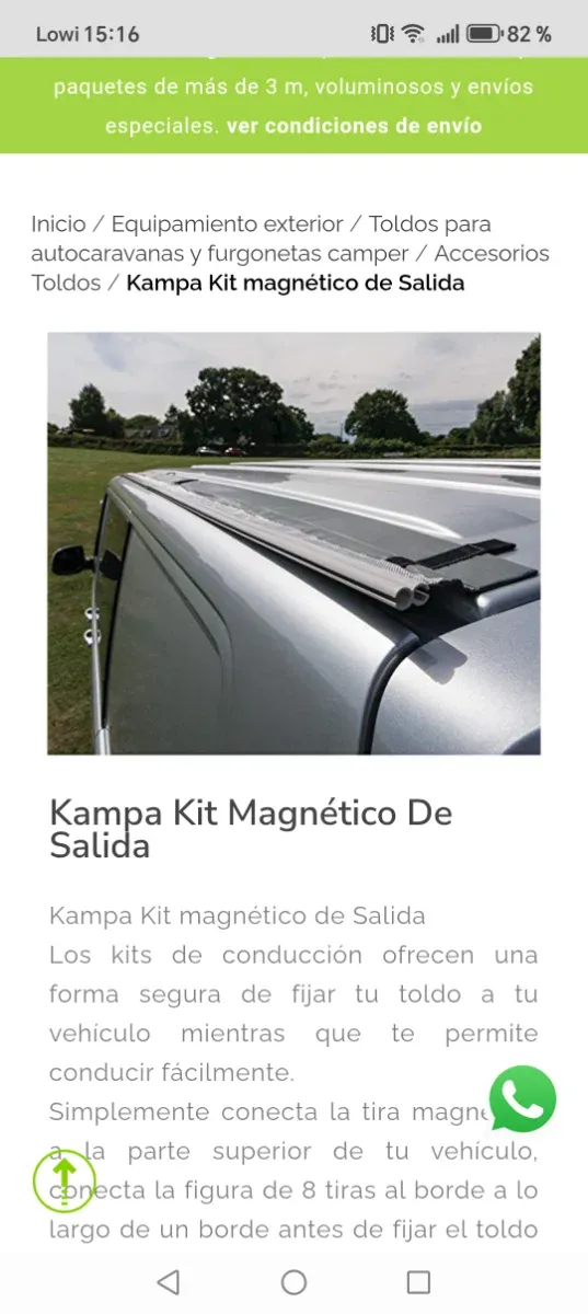 Kit magnético para furgoneta camper 3 metros de longitud. Usada 2 veces.