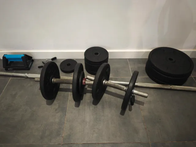 Detalles del productoKit de mancuernas para entrenamiento de fuerza.