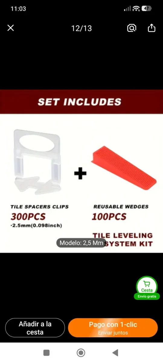 Detalles del productoKit para nivelar azulejos que incluye clips y cuñas reutilizables.
