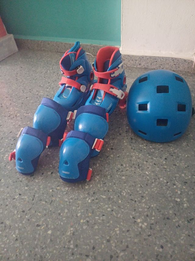 kit de patinaje con patines, rodilleras, coderas y casco. Decathlon