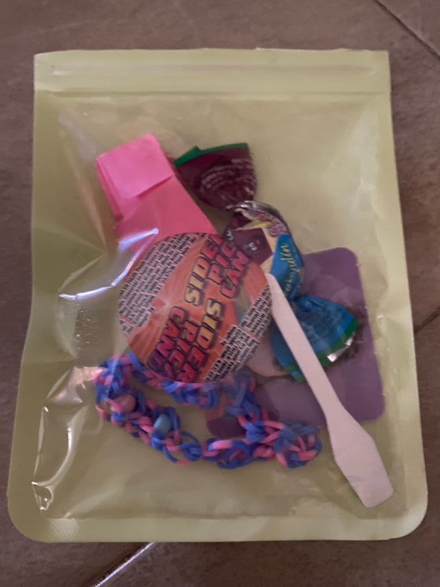 Detalles del productoSe vende kit para hacer pulseras. Incluye una pulsera de gomitas, una paleta de colores, dulces y una espátula. Todo en una bolsa de plástico resellable. Ideal para un regalo o para pasar un rato creativo.