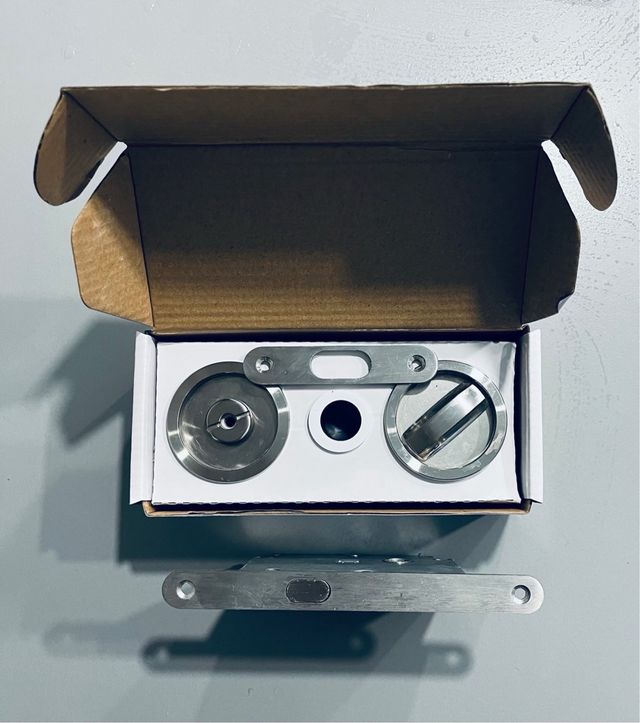 Kit redondo para puerta corredera de condena en aluminio. Perfecto estado y empaquetado. Todas las medidas en la última fotografía.
