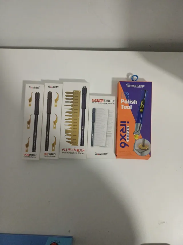 Kit de herramientas para removedor de IC. - Incluye removedor de pegamento. - Incluye juego de cuchillas pulidas a mano. - Incluye herramienta de pulido de chip.
