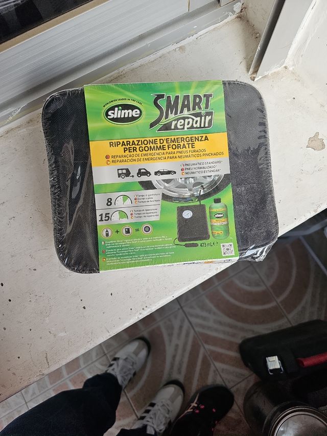 Detalles del productoKit de reparación de emergencia para neumáticos pinchados de la marca Slime.