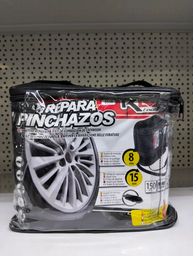 - Incluye kit de reparación y compresor de aire.
