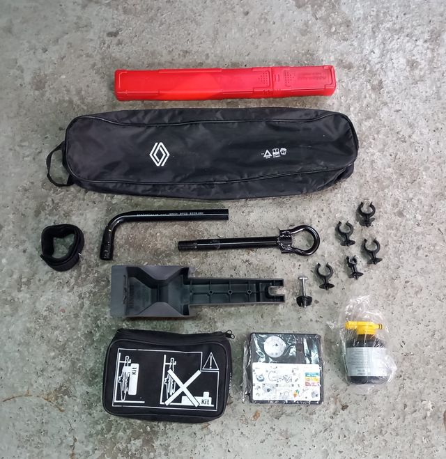 Detalles del productoSe vende kit completo NUEVO para reparación de pinchazos de Renault Express año 2022 1.5DCI 94cv .Incluye llave de rueda, gancho amarre , 5 clips enganche ,carcasa plastica subjecció, estuche de tela , triangulos emergencia ,compresor aire con bote adicional . Está en buen estado y listo para usar. Todo original RENAULT nuevo a estrenar .
