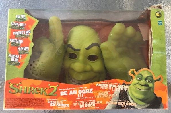 Detalles del productoKit de Hasbro para transformarte en Shrek. Está en su caja original (medidas: 38 X 14 X 26 centímetros), que presenta señales normales de uso y almacenamiento. Incluye máscara y guantes. ¡Diviértete convirtiéndote en el famoso ogro! - Máscara de Shrek. - Guantes a juego. - Caja original.