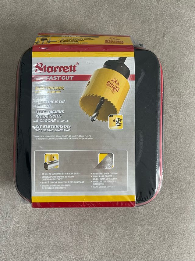 Detalles del productoKit de sierras de corona Starrett Fast Cut para electricistas. Incluye 6 sierras de corona bi-metal de paso constante y 2 árboles.