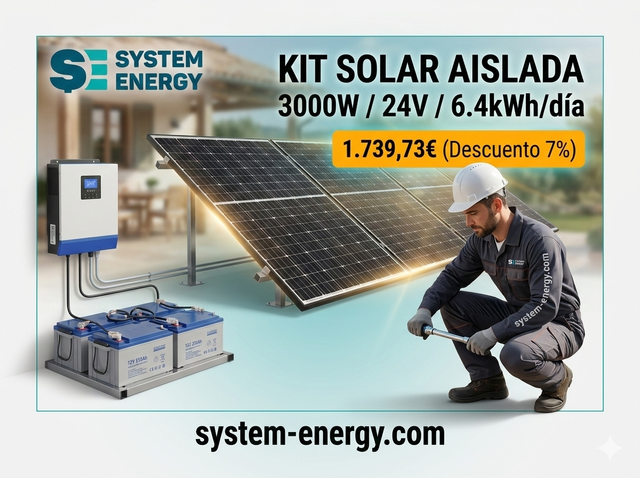 ¿Harto de facturas imposibles o de no tener luz en tu finca? 💡 Este Kit Solar 3000W 24V es tu libertad definitiva. Genera 6400Wh/día para disfrutar de tu nevera A++, TV y luces sin ruidos ni gasolina. Incluye paneles de 500W, inversor de 3500W y baterías sin mantenimiento. ¡Instalar y listo! ⚡️ Aprovecha el 7% de descuento: solo 1.739,73€. Calidad profesional para tu casa de campo o fin de semana. No dependas más de las eléctricas. Entra aquí para ver detalles y comprarlo: system-energy.com/catalog/energia-solar/kits-solares/kit-solar-aislada/kit-solar-casa-campo-3000w-24v-6400whdia