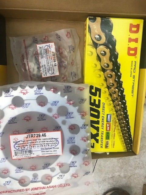 did marca regorzado con retenes color oro. completa cadene did retenes oro xring, mas piñon y corona, envios. Otras piezas pantalla rodamientos cable de acelerado, defensas laterales protectores de caída cubre carter protector araña tapa de alternador estator regualador Corriente piloto junta contrapesos bujías batería gel litio discos de embrague manetas pastillas de freno izquierda derecha discos de freno transmisión cadena corona piñon filtros Latiguillos metalicos espejo retrovisor Porta matriculas itv intermitentes cúpula 750