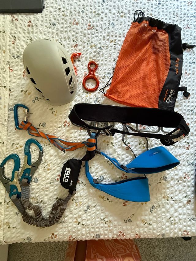 Detalles del productoConjunto de equipo para vía ferrata, listo para tu próxima aventura.