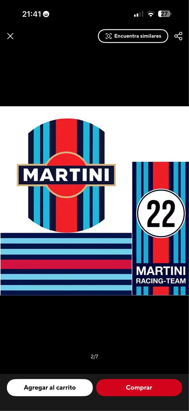 Detalles del productoKit de vinilos adhesivos con el icónico diseño de Martini Racing Team.